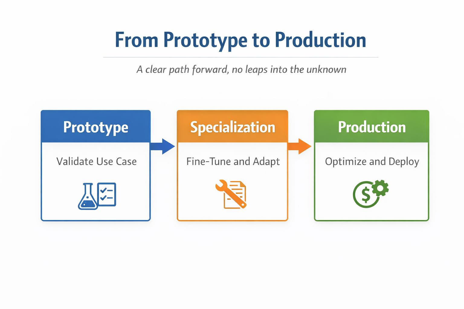 Use GPT-4o Mini or Claude Haiku to validate the use case. Invest $100-500 in API calls. Goal: confirm that the problem is solvable with AI and collect the first 1,000+ real examples of correct input/output. Don't look for perfection—look for signal.