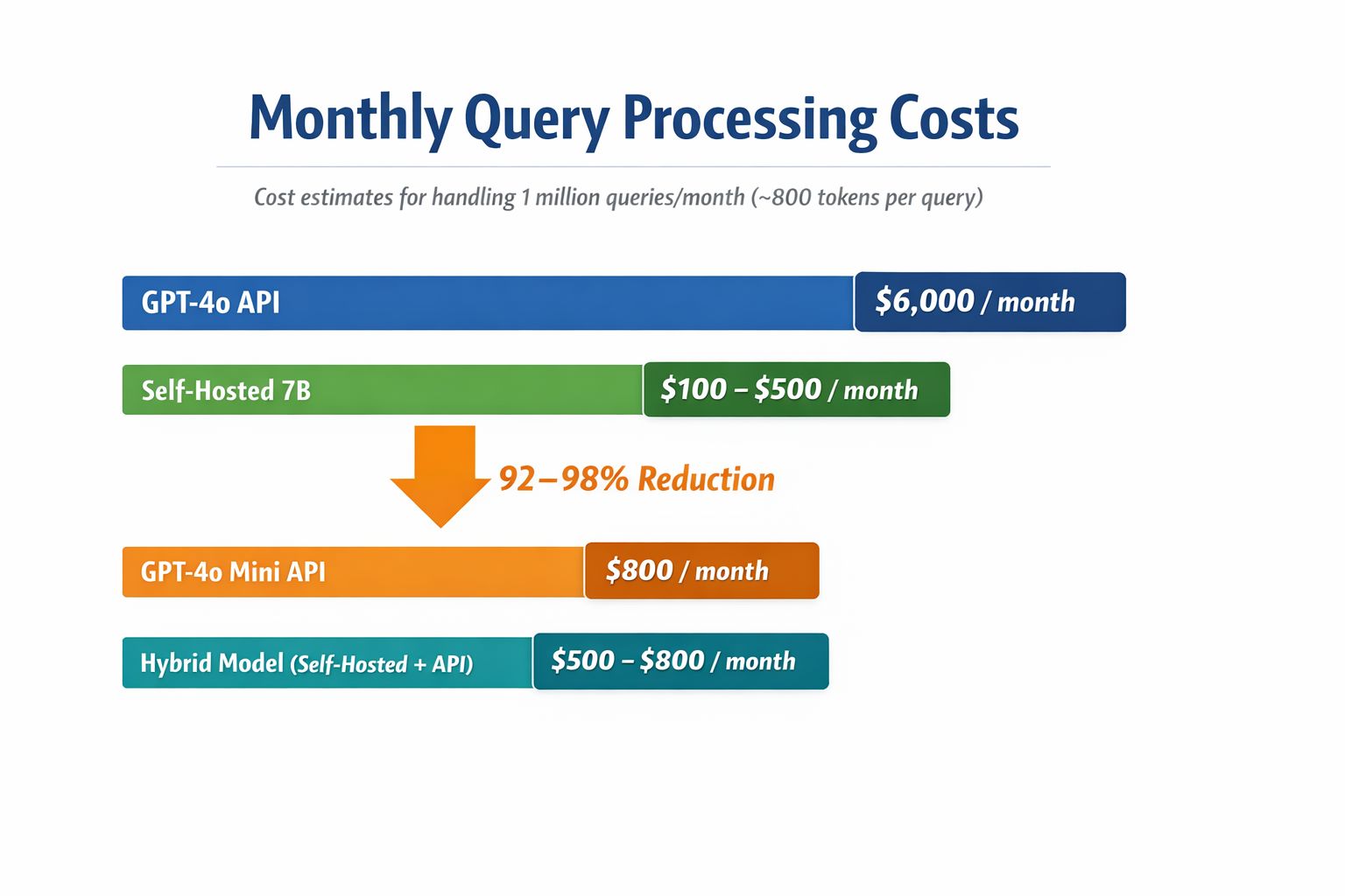 This isn't theory. A documented fintech case study showed a shift from $47,000/month on GPT-4o Mini to $8,000/month with a hybrid approach (self-hosted models for routine queries + selective API for complex cases). Payback in 4 months. After a year, they had saved $468,000.