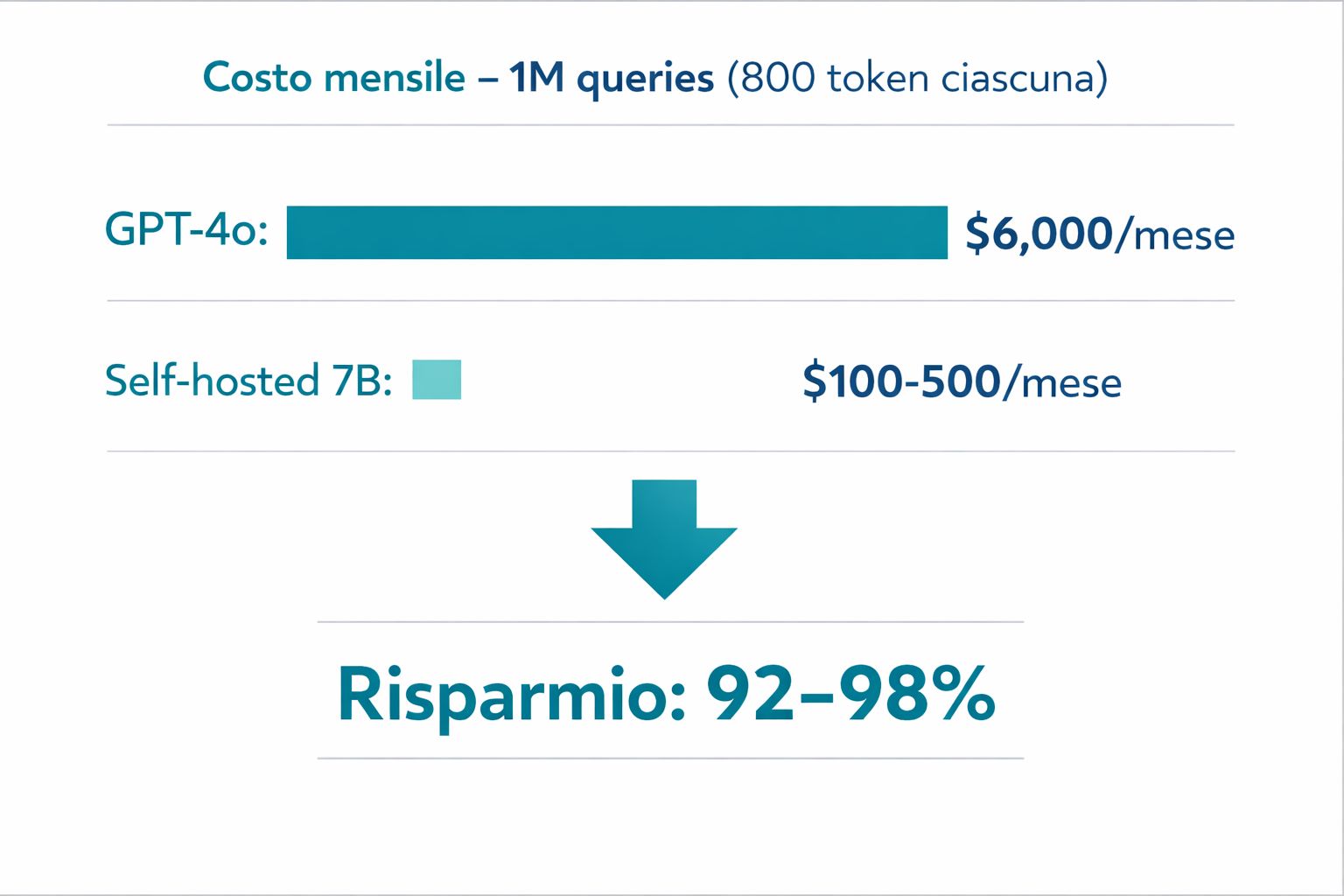 Self-hosted 7B: $100-500/mese = $1.200-6.000/anno