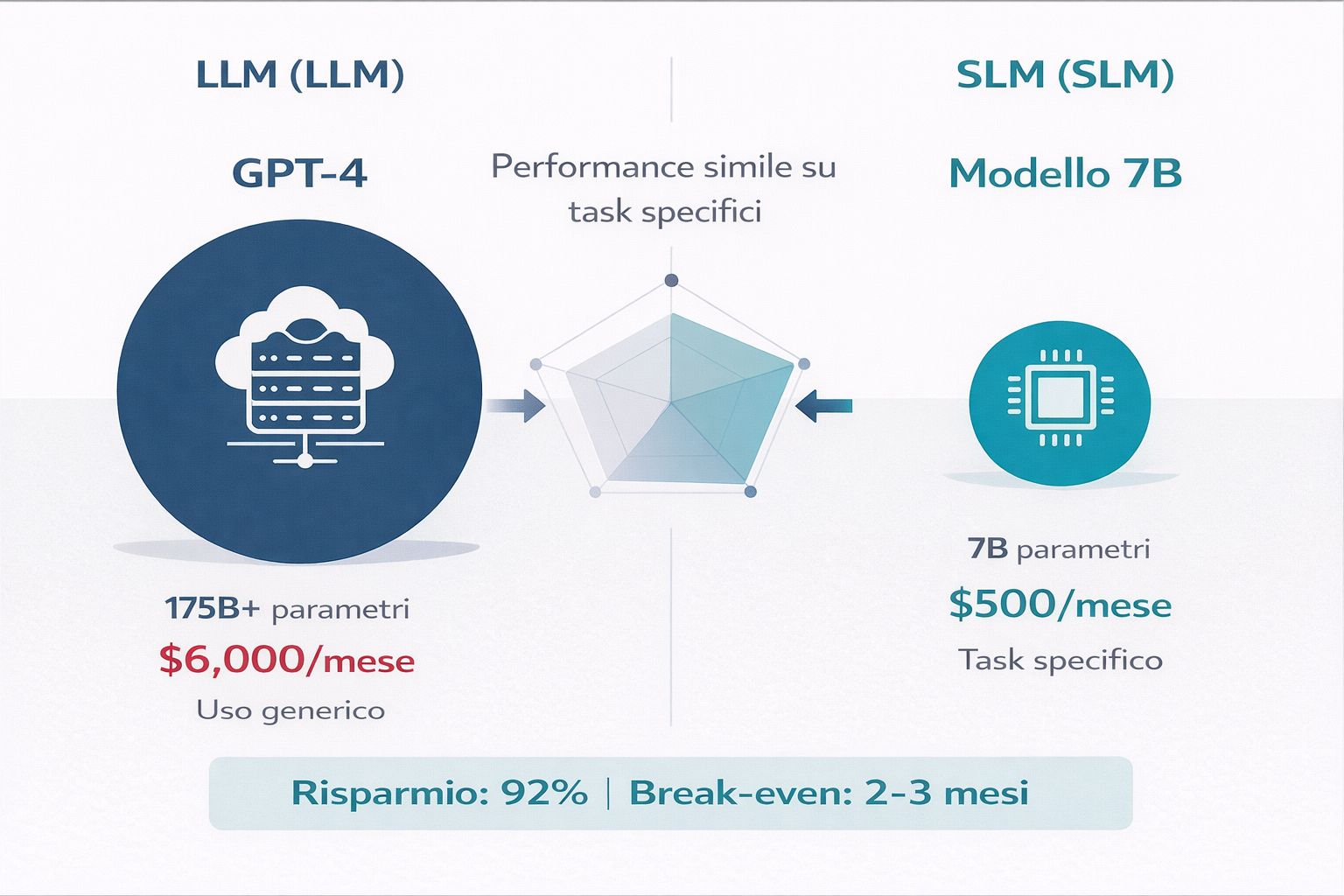 Quando chiedi a GPT-5.2 di classificare i tuoi ticket di customer support, stai usando lo 0,01% della sua capacità. Il restante 99,99%—tutta quella conoscenza enciclopedica—non serve. Ma la stai pagando comunque. Ogni token costa. Ogni millisecondo di processing costa. Ogni GB di memoria GPU costa.